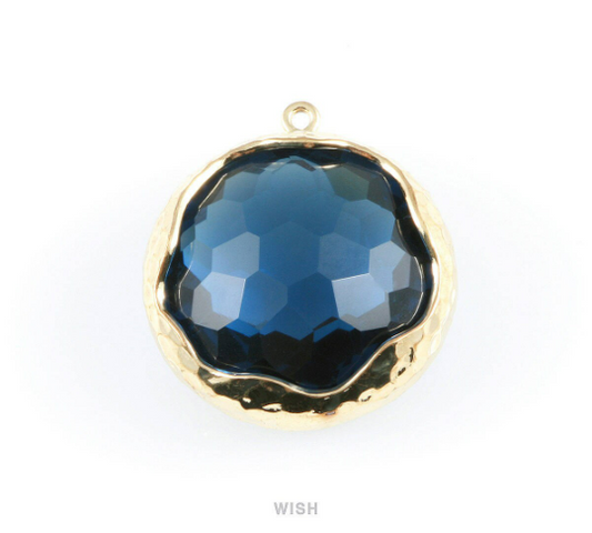 1 piece of Montana Blue Faceted Glass Charms in Gold, Framed Round Pendant / GMBG-011-P