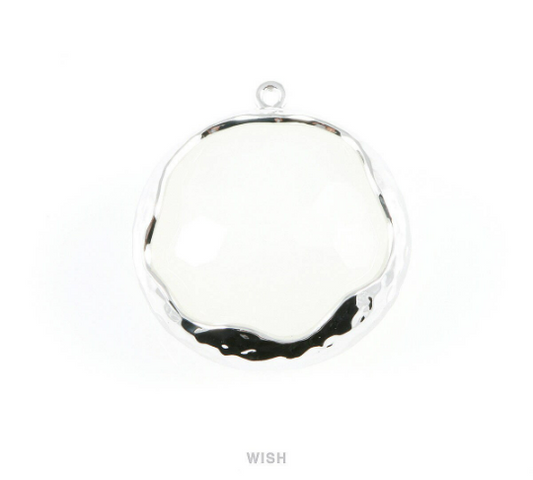 1 piece of White Alabaster Faceted Glass Charms in Rhodium, Framed Round Pendant / GWARH-011-P
