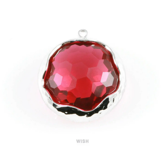 1 piece of Ruby Faceted Glass Charms in Gold, Framed Round Pendant / GRBG-011-P