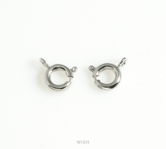 10 Rhodium Plated Spring Clasps with 10 Clasp Bars, Lobster Claw Clasps / FRH-021-C-Spring