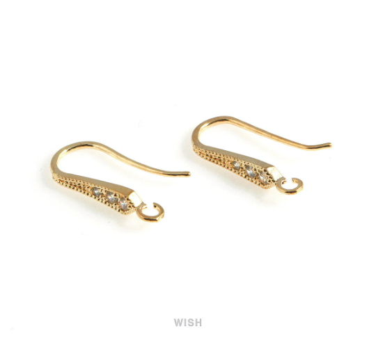4 Pcs Tapered Rhombus Cubic Zirconia Ear Hook in Gold, Cubic Zirconia Ear Hook /CG-027-E