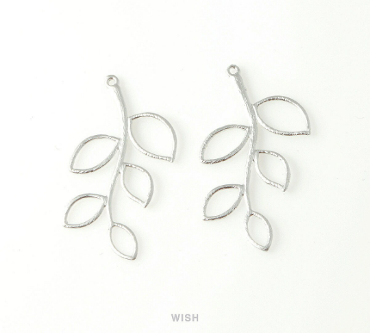 5 Leaf Branch Pendant in Matte Rhodium, Textured Leaves Branch Charm /MMRH-206-P
