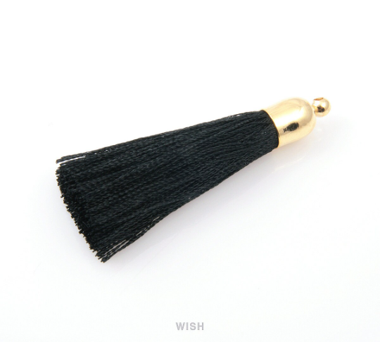 Black Thread Tassel with Bell Cap in Gold / TBKG-002-T (Medium)