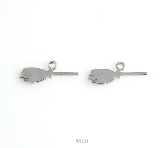 Broomstick Pendants in Rhodium, Halloween Broom Charm / MRH-469-P