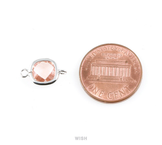Charcoal Faceted Glass Connector in Rhodium, Square Framed Connector / GCCRH-041-P