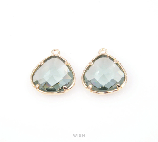 Charcoal Faceted Glass Drop Charm in Gold, Charcoal Charms / GCCG-036-P