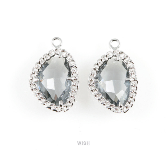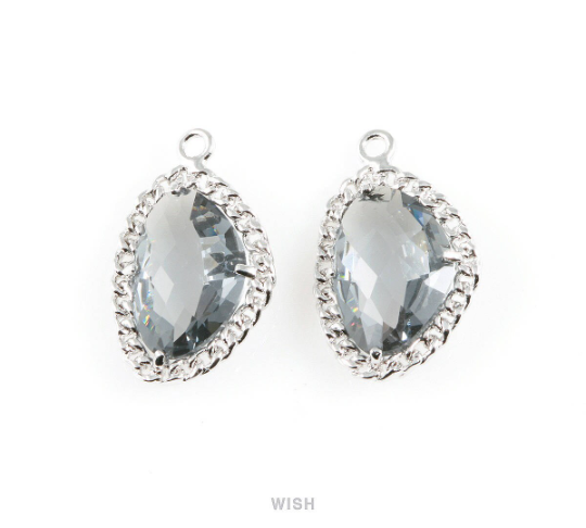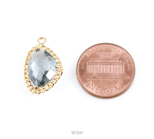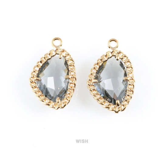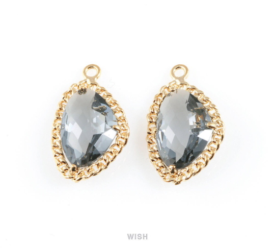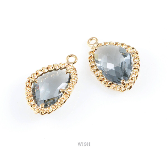 Charcoal Triangle Shape Pendants in Gold, Framed Triangle Charms / GCCG-034-P