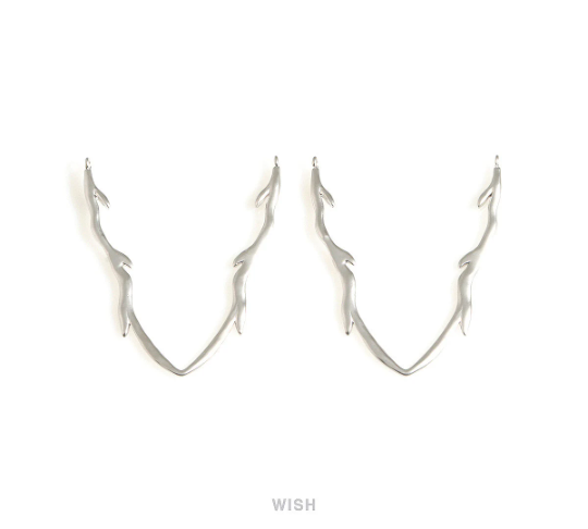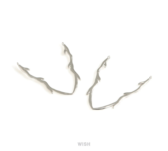 Chevron Antler Pendants in Matte Rhodium, Large Antler Charms / MMRH-706-P