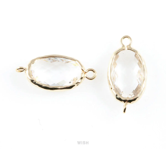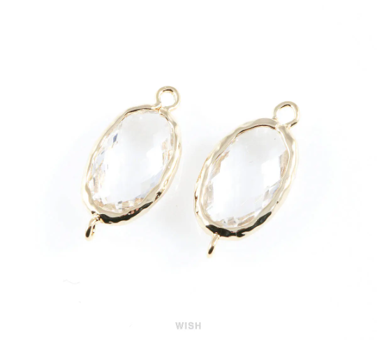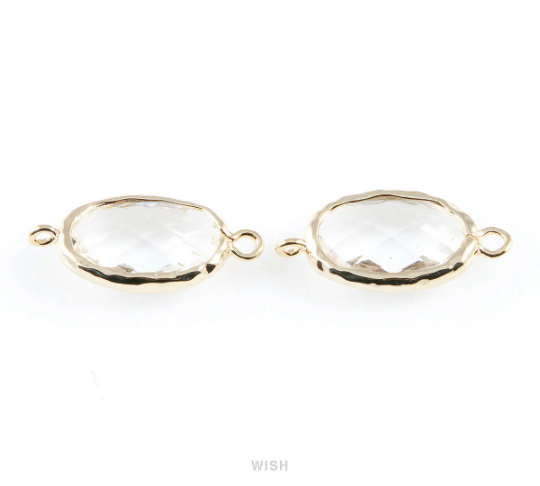 Clear Oval Hammered Connector in Rhodium, Framed Oval Connector / GCLRH-038-C