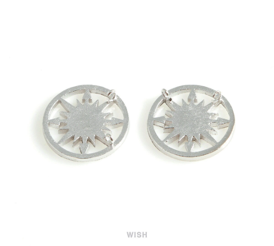 Compass Disc Pendants in Matte Rhodium, Compass Charm / MMRH-431-P
