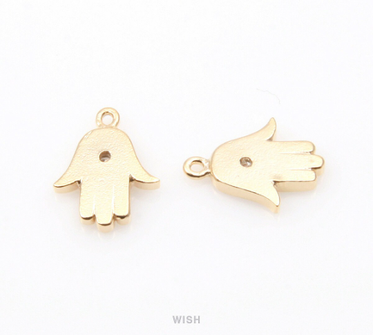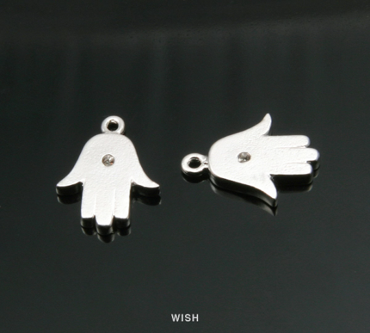 Cubic Zirconia Hamsa Pendant in Matte Rhodium, CZ Hamsa Charm / MMRH-305-P