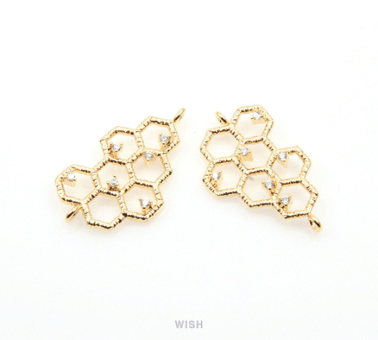 Cubic Zirconia Honeycomb Pendant in Gold, Beehive Charm / CG-065-P