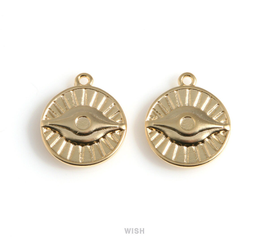 Evil Eye Disc in Matte Gold, Evil Eye Coin Charm / MMG-520-P
