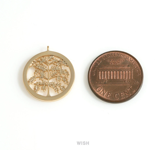 Family Tree Charm in Matte Gold, Family Tree Pendant / MMG-687-P