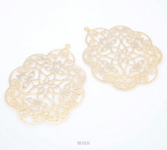 Flat Floral Pattern Filigree Pendants in Gold, Flower Charms / MG-061-P