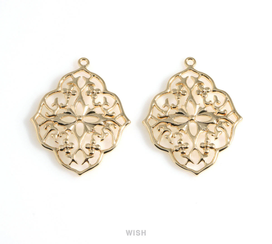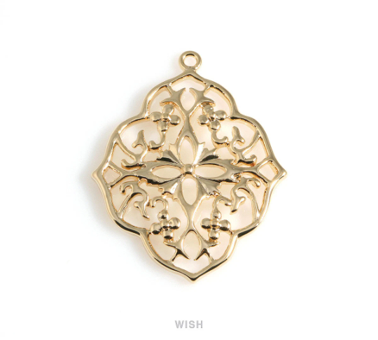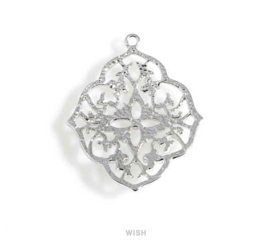 Floral Shield Pendants in Rhodium, Oriental Floral Charm / MRH-057-P