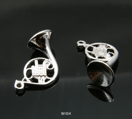 French Horn Pendants in Gold, Musical Instrument Charms /MG-327-P