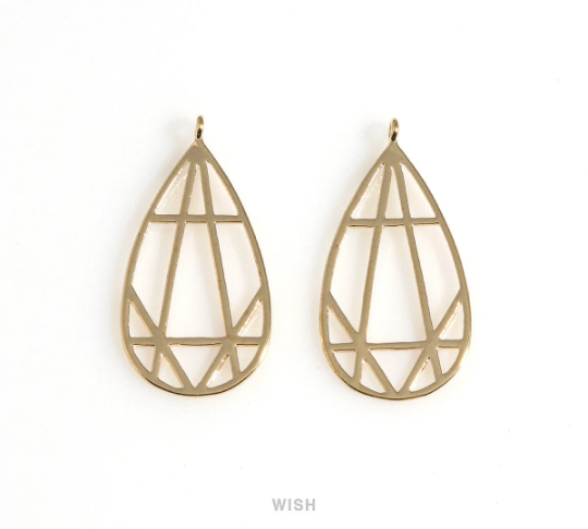 Geometric Drop Charms in Rhodium, Geometric Teardrop Pendants / MRH-650-P