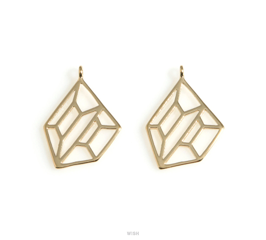 Geometric Pentagon Charm in Rhodium, Open Pentagon Necklace Pendants / MRH-629-P