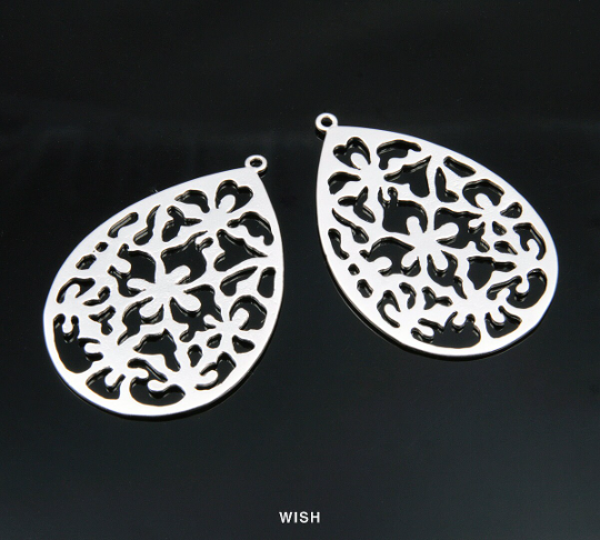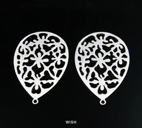 Geometric Teardrop Pendants in Matte Rhodium, Teardrop Charms / MMRH-119-P