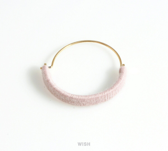 Gold Hoop Earrings and Beige Cotton Thread Wrapped