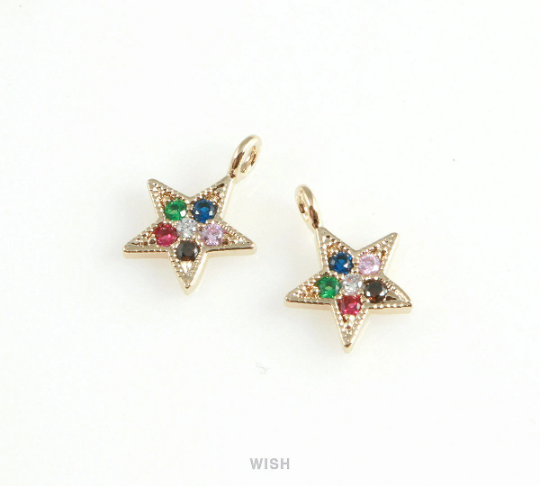 Gold Star with Birthstone Pendant, Multi Color Star Charm / MG-409-P