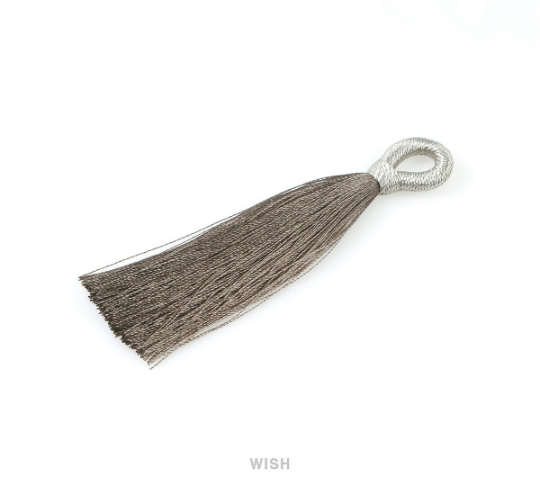 Gray Cotton Thread Tassel, Gray Silk Tassel Earrings / TGYG-008-T