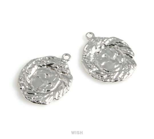Hammered Coin Pendants in Matte Rhodium, Hammered Disc Charm / MMRH-526-P