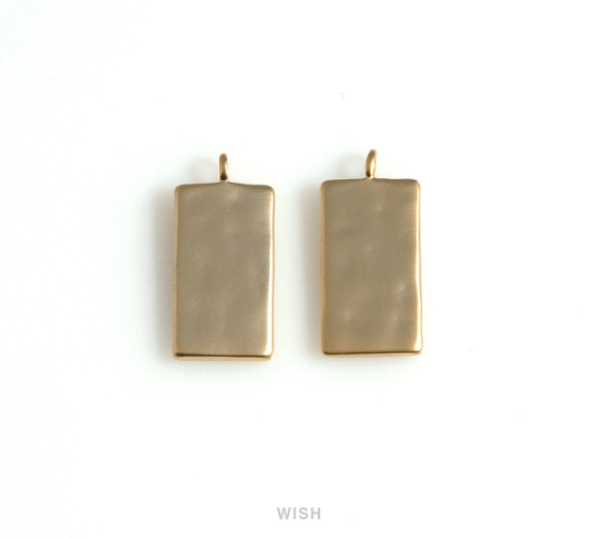 Hammered Rectangle Pendants in Matte Gold, Hammered Rectangle Charms / MMG-663-P