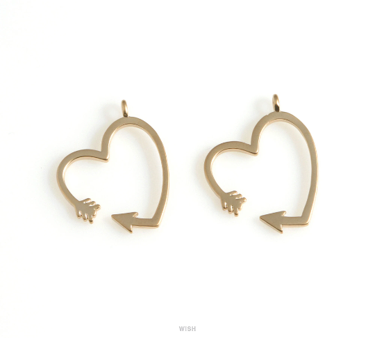 Heart Arrow Pendant in Matte Rhodium, Open Heart Charm / MMRH-626-P