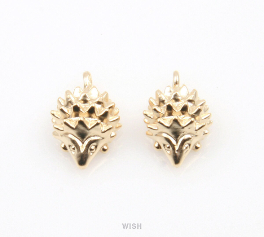 Hedgehog Pendants in Matte Gold, Solid Hedgehog Charm / MMG-333-P