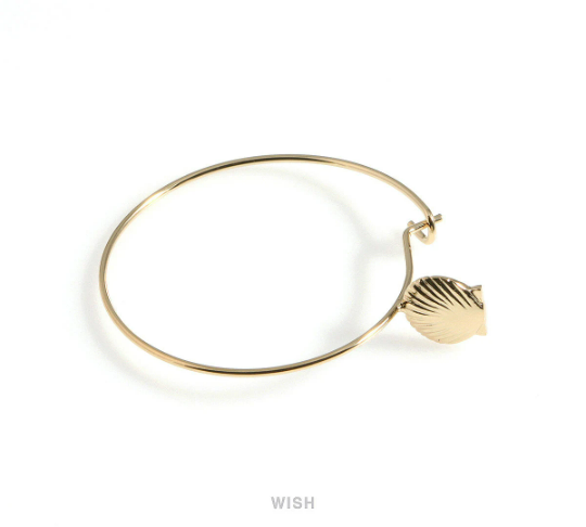 Hoop Earrings with seashell in Rhodium, Scallop Shell Hoop Earrings /FRH-044-E