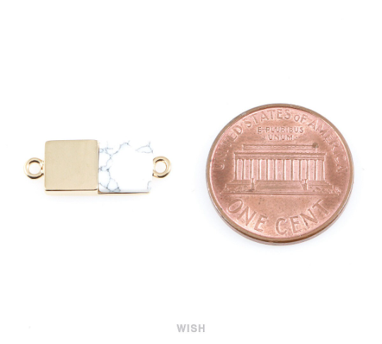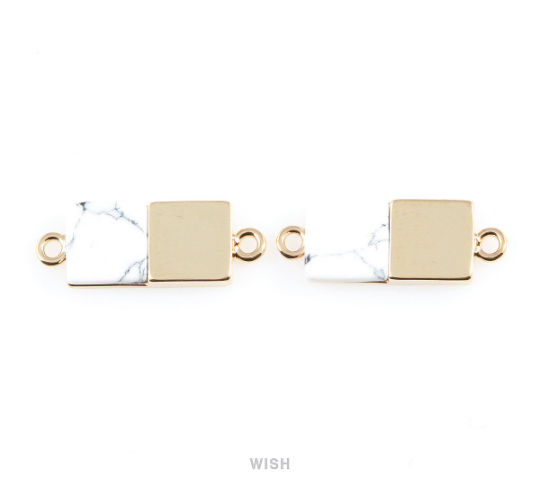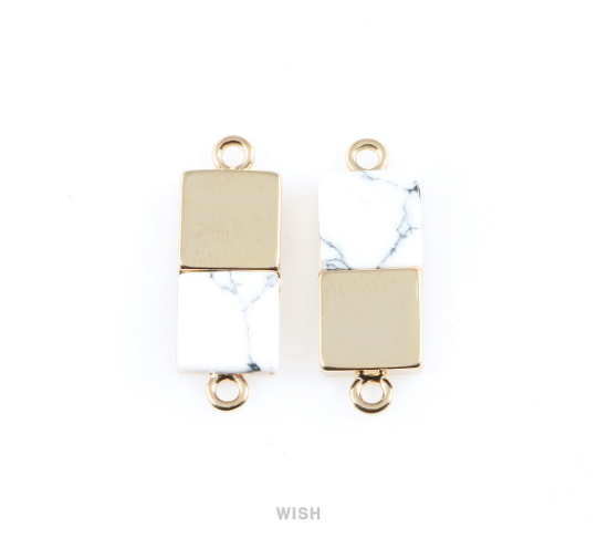 Howlite Rectangle Stone Charm in Rhodium, Gemstone Framed Pendant / SHTRH-055-P