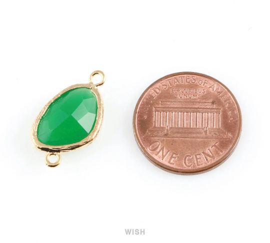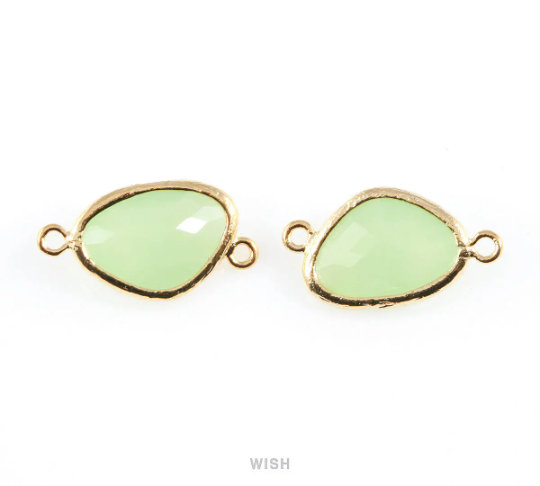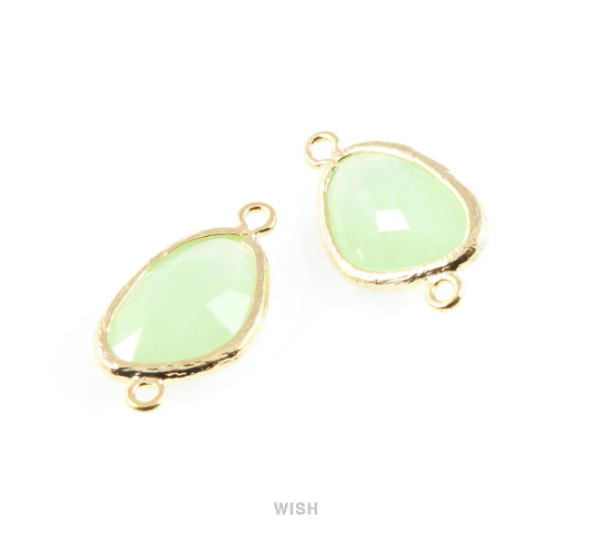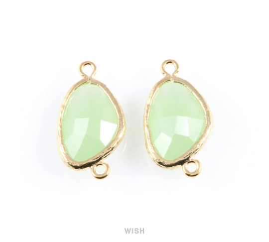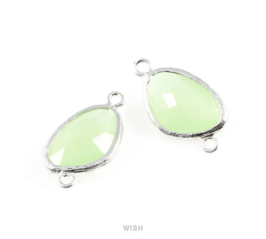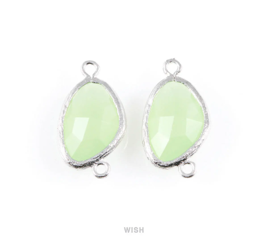 Light Mint Triangle Glass Connector in Rhodium, Framed Triangle Connector / GLMRH-031-P