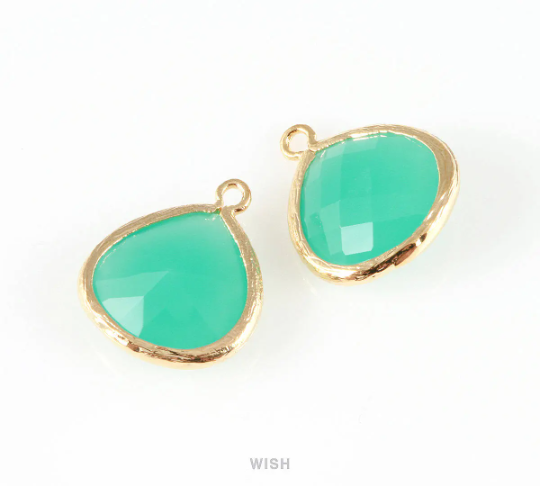 Mint Faceted Glass Charm in Rhodium, Framed Drop Glass Bead / GMTRH-001-P (Large)