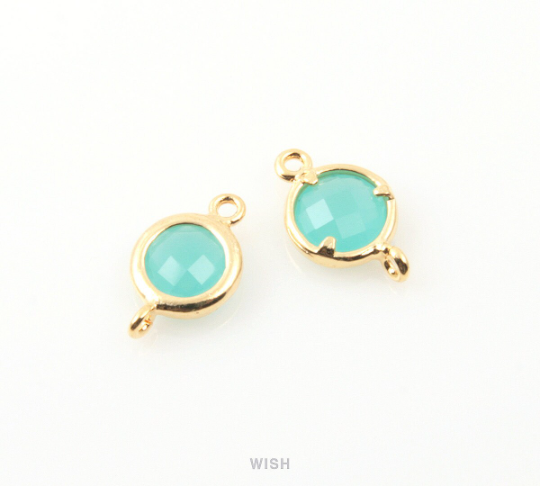 Mint faceted Glass Connector in Rhodium, Framed Round Glass Bead / GMTRH-102-C