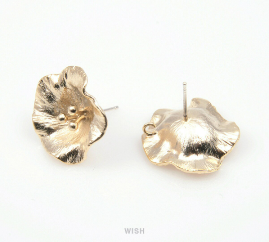 Morning Glory Stud Earrings in Matte Gold, Flower Stud Ear Post / MMG-159-E