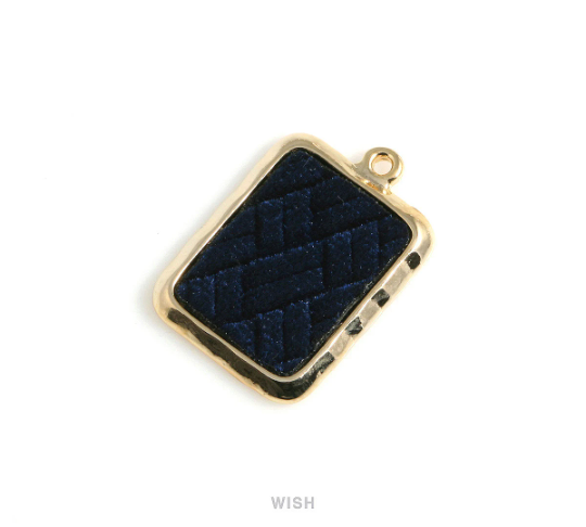 Navy Velvet in Gold Square Frame, Navy Velvet Square Charm / LNVG-488-P