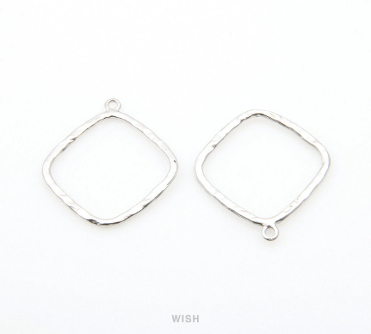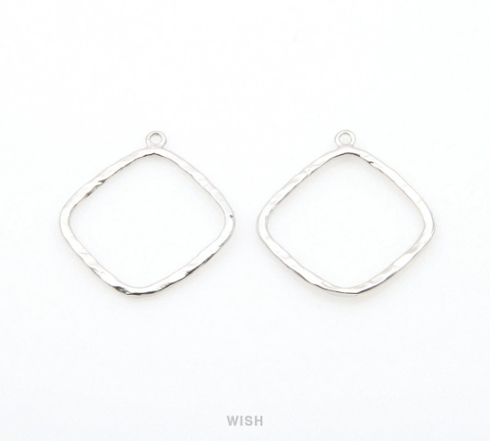 Open Hammered Diamond Pendant in Matte Rhodium, Open Diamond Charm / MMRH-270-P