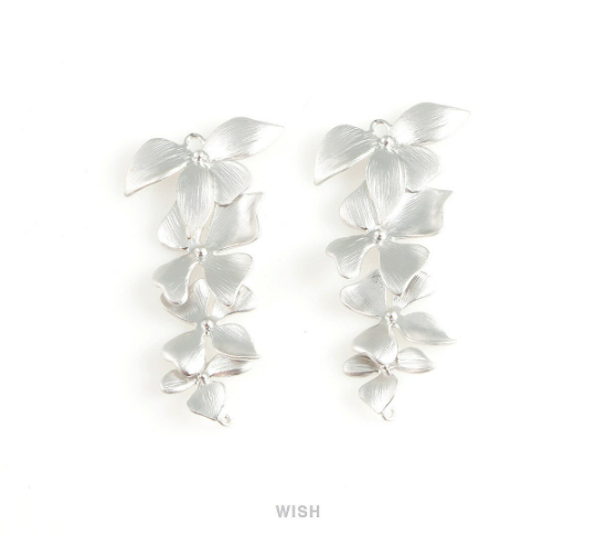 Quadruple Orchid Pendant in Matte Rhodium, Quadruple Orchid Charm / MMRH-209-P