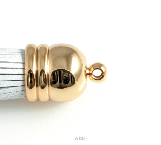Red Leather Tassel with Bell Cap in Gold, Red Cowhide Tassel / LRDG-006-T (1 piece)