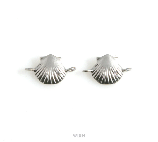 Seashell Pendant in Matte Gold, CZ Scallop Seashell Charm / MMG-569-P