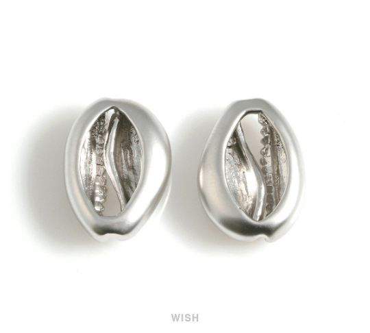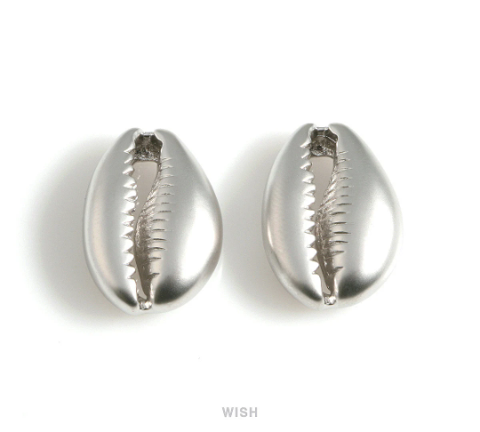 Seashell Pendants in Matte Rhodium, Cowry Shell Charm / MMRH-567-P