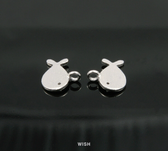 Small Whale Pendants in Matte Rhodium, Whale Charm / MMRH-118-P