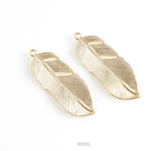 Textured Feather Pendant in Matte Rhodium, Textured Solid Feather Charm / MMRH-208-P